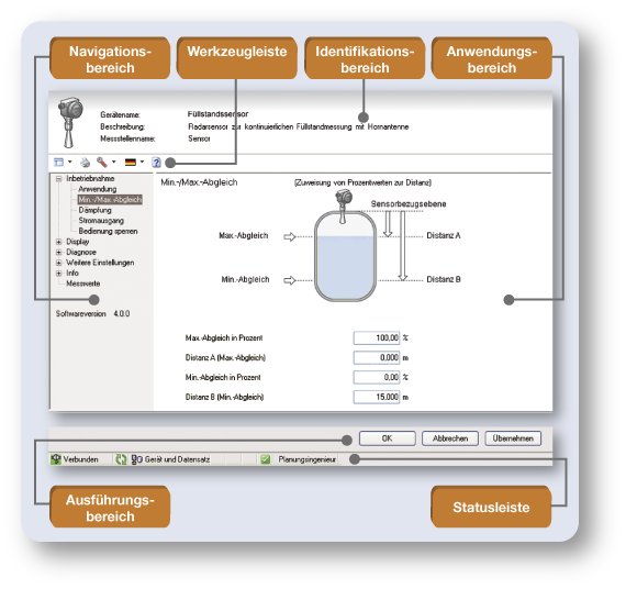 Used by the user to uniquely identify the field device. Contains the device and company logo, device operation information, device number, and version information. Optional DTM-specific information